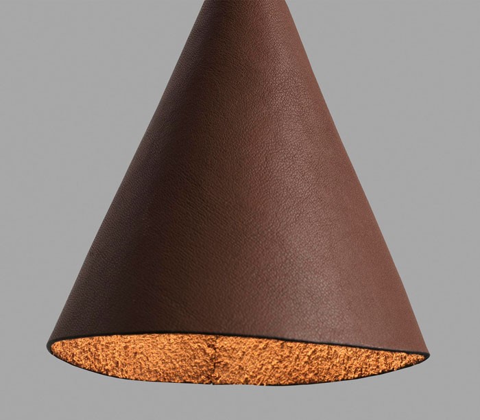 Con su pantalla de piel roas, la lámpara colgante Fada de Faro es un complemento alegre que da un toque de vitalidad a salones y dormitorios sin perder la elegancia.