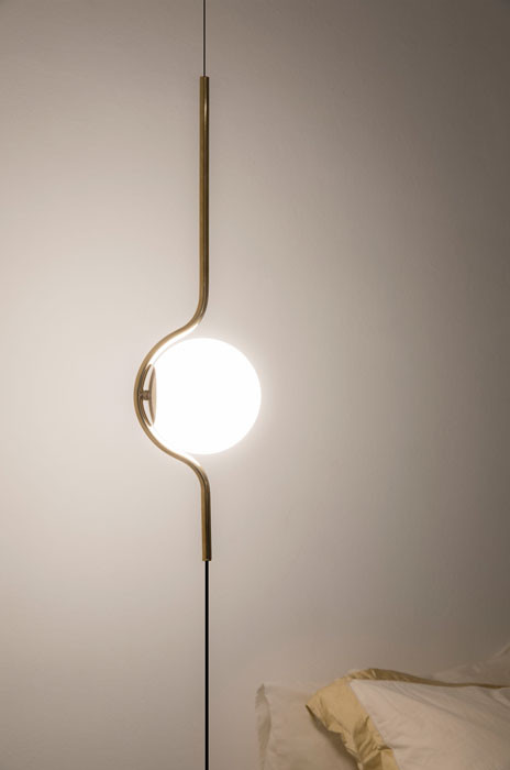 Lámpara colgante/de pie Le Vita de Faro Barcelona. Delicado diseño de Nathrang que combina las líneas y las esferas en tonos blancos y dorados. Luz cálida con difusor para una iluminación suave.