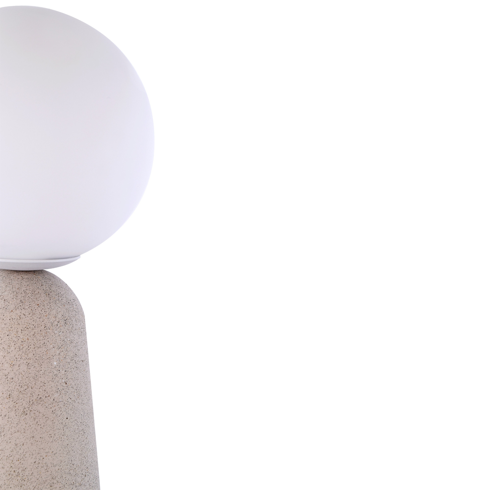 Lámpara de sobremesa de hormigón gris con bola blanca. El hormigón se ha impuesto como uno de los materiales de moda para vestir interiores. Su textura y elegancia le darán a tu hogar un toque muy personal. Esta lámpara moderna, sofisticada y con aires de escultura, quedará ideal en cualquier rincón y con cualquier estilo decorativo. Base de hormigón y bola opal blanca que funciona con casquillo E14. Cable negro en tela de nailon para un acabado perfecto.