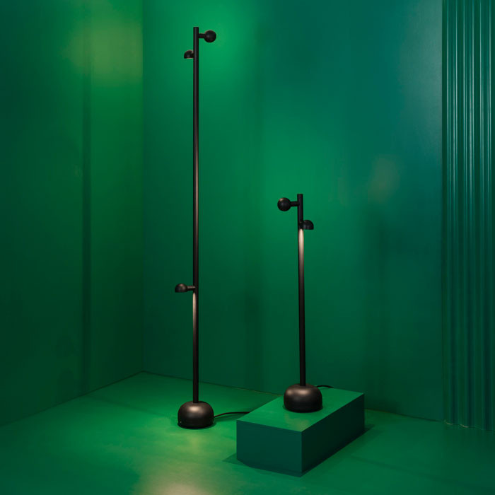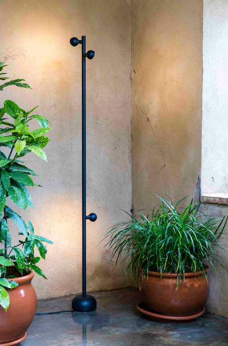 Lámpara de pie BROT 30W de Faro Barcelona, con diseño del Yembara Studio. Apta para iluminación exterior, co un pico para facilitar su instalación.