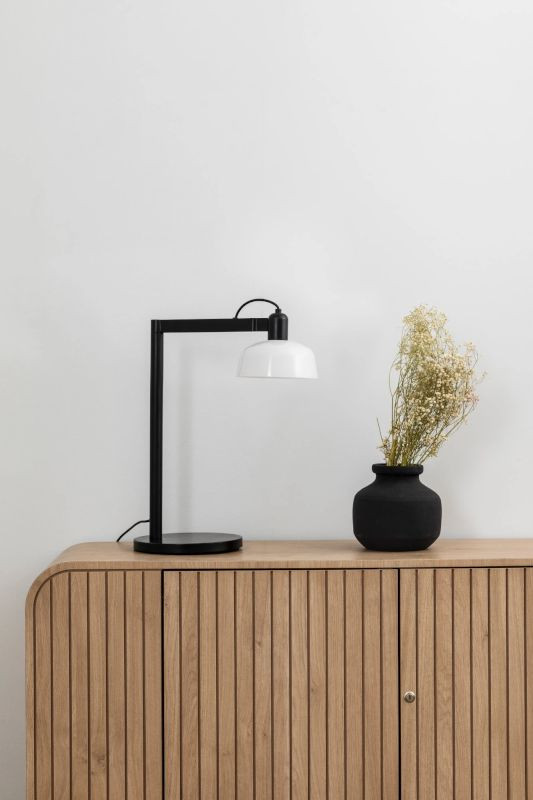 Lámpara de sobremesa LED TATAWIN de Faro Barcelona. Estructura metálica con brazo giratorio. Iluminación decorativa con luz ambiental para despachos y dormitorios.