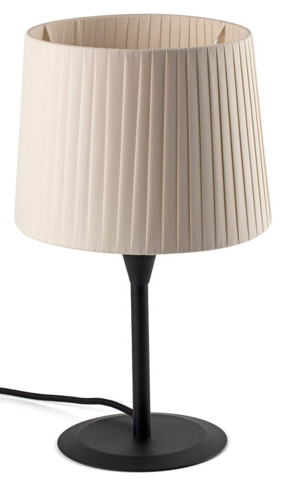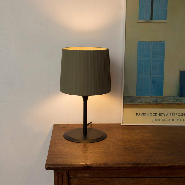 Lámpara de sobremesa SAMBA de Faro Barcelona. Con pantalla textil plisada y varios acabados disponibles, es adecuada para dormitorios, salones y hoteles.