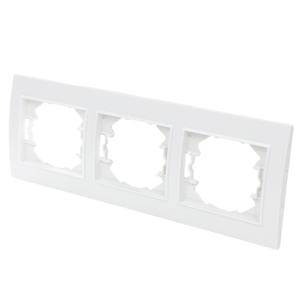 Marco embellecedor para tres mecanismos, disponible en tres colores diferentes: blanco, negro o plata. Es ideal para obtener una decoración moderna y minimalista en cualquier estancia dentro del hogar (pasillos, habitaciones, baños, salón o cocina), así como en hoteles, restaurantes, tiendas o centros comerciales. Compatible con todos los mecanimos de la serie PC, es apto para instalación sobre cajas de mecanismos empotrables universales. Está diseñado en policarbonato con las medidas 227 x 82 x 10 mm. Soporta un voltaje de entrada de 200-240V y una frecuencia de servicio de 50/60 Hz. Debido a su grado de protección IP20 es ideal para instalar en zonas interiores (protección contra partículas sólidas de tamaño superior a 12mm y no es resistente al agua). Dispone de una garantía de 3 años. Cuenta también con el certificado CE, que acredita que se cumple con los requisitos de la UE respecto a compatibilidad electromagnética y normativa de baja tensión. Con este certificado se declara la conformidad de dicho producto con todos los requisitos legales exigidos, y asegura la validez del producto para ser vendido en todo el Espacio Económico Europeo.