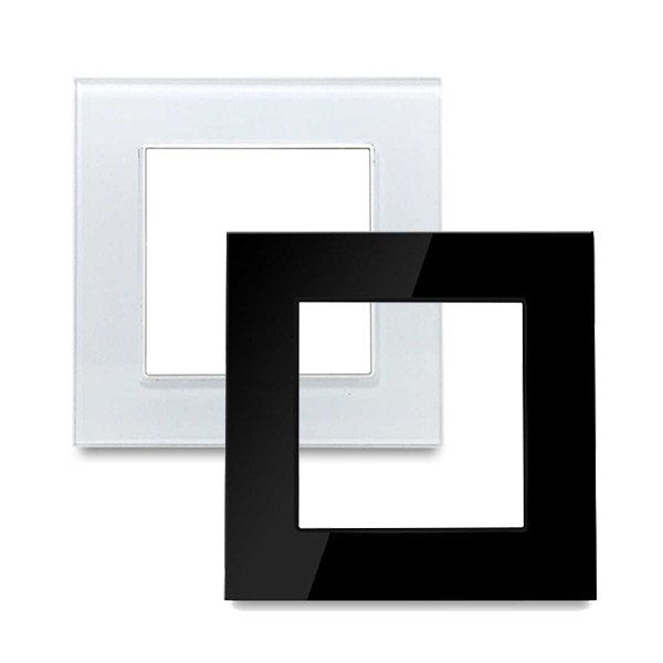Marco embellecedor de cristal para un mecanismo, disponible en dos colores: blanco o negro. Ideal para crear un acabado moderno y minimalista en cualquier instalación interior. Es un mecanismo apto para instalación sobre cajas de mecanismos empotrables universales. No compatible con los mecanismos de la serie PC. Está diseñado en cristal y policarbonato con las medidas 86 x 86 x 9 mm. Debido a su grado de protección IP20 es ideal para instalar en zonas interiores (protección contra partículas sólidas de tamaño superior a 12mm y no es resistente al agua). Dispone de una garantía de 3 años. Cuenta también con el certificado CE, que acredita que se cumple con los requisitos de la UE respecto a compatibilidad electromagnética y normativa de baja tensión. Con este certificado se declara la conformidad de dicho producto con todos los requisitos legales exigidos, y asegura la validez del producto para ser vendido en todo el Espacio Económico Europeo. Incluye bastidor.