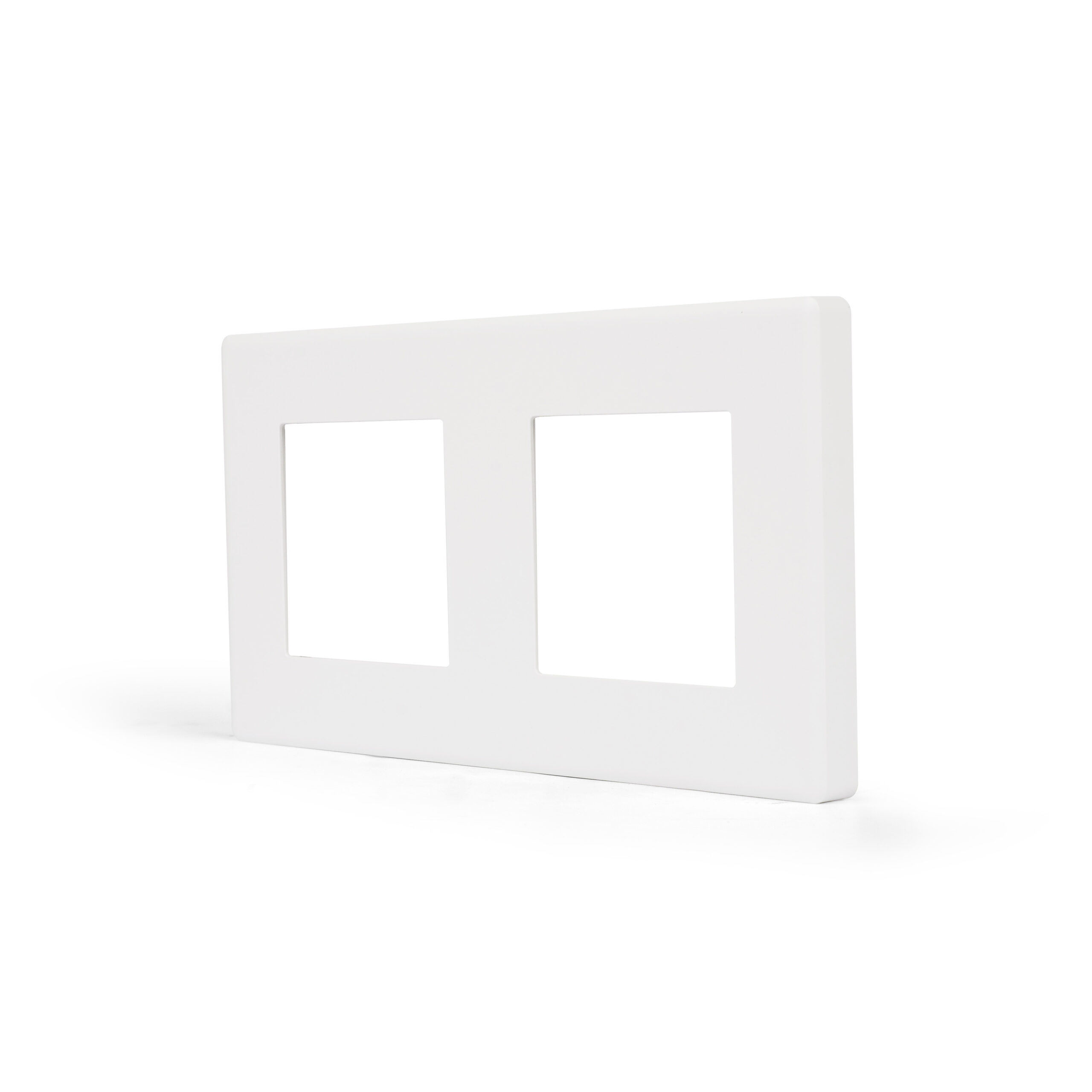 Marco embellecedor de policarbonato para dos mecanismos, disponible en dos colores: blanco o negro. Ideal para crear un acabado moderno y minimalista en cualquier instalación interior. Se puede combinar con cualquier mecanismo de la serie cristal. Apto para instalación sobre cajas de mecanismos empotrables universales. No compatible con los mecanismos de la serie PC. Está diseñado en policarbonato con las medidas 157 x 86 x 9 mm. Debido a su grado de protección IP20 es ideal para instalar en zonas interiores (protección contra partículas sólidas de tamaño superior a 12mm y no es resistente al agua). Dispone de una garantía de 3 años. Cuenta también con el certificado CE, que acredita que se cumple con los requisitos de la UE respecto a compatibilidad electromagnética y normativa de baja tensión. Con este certificado se declara la conformidad de dicho producto con todos los requisitos legales exigidos, y asegura la validez del producto para ser vendido en todo el Espacio Económico Europeo. Incluye bastidor.