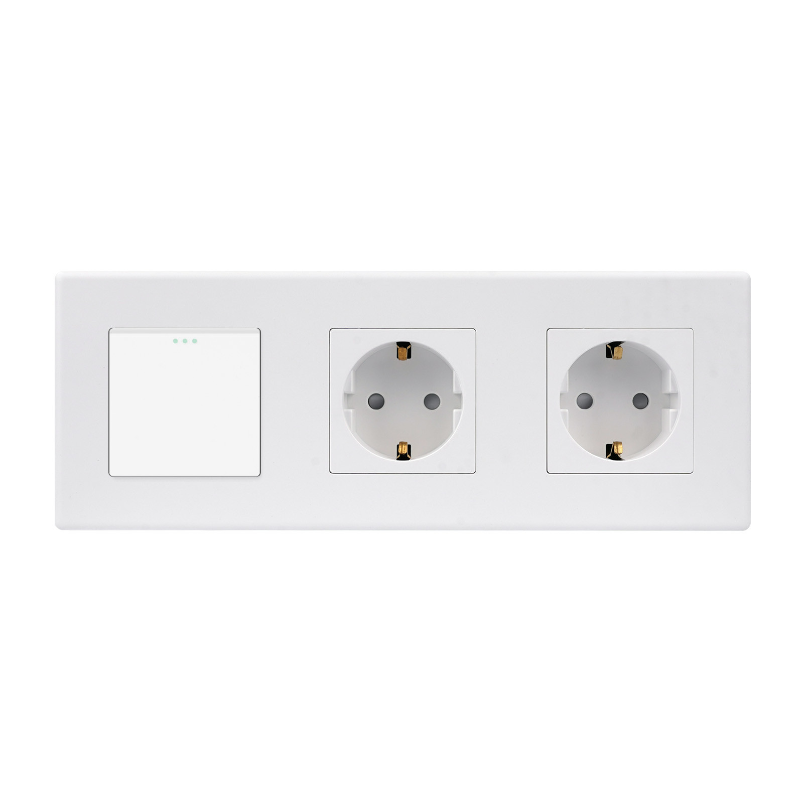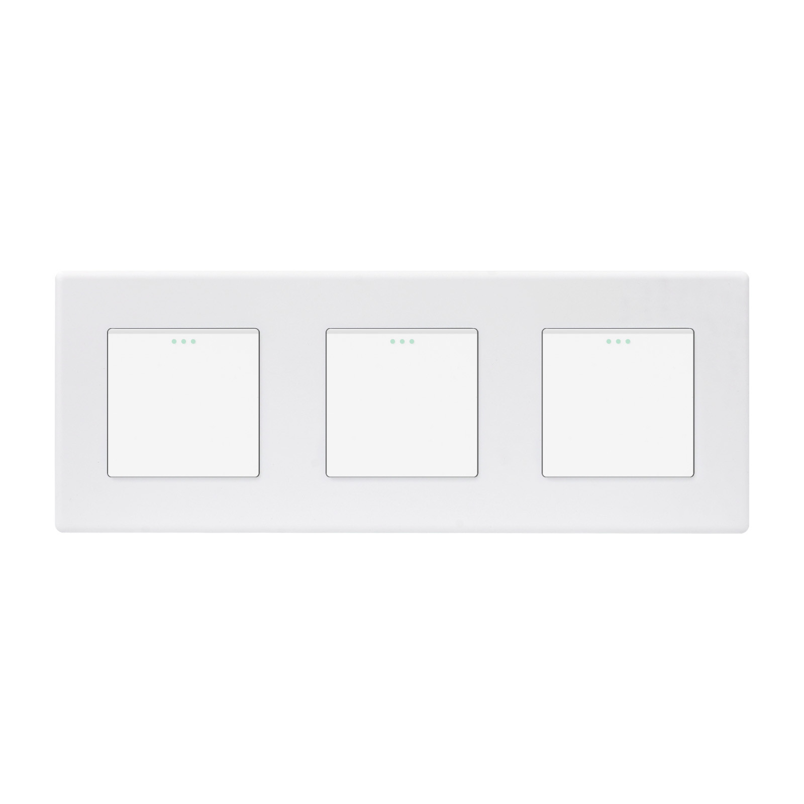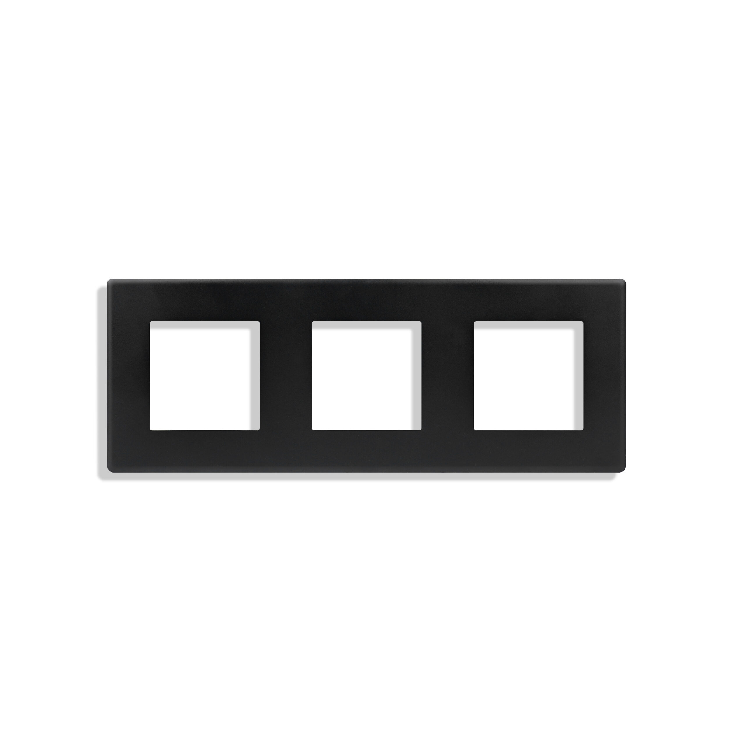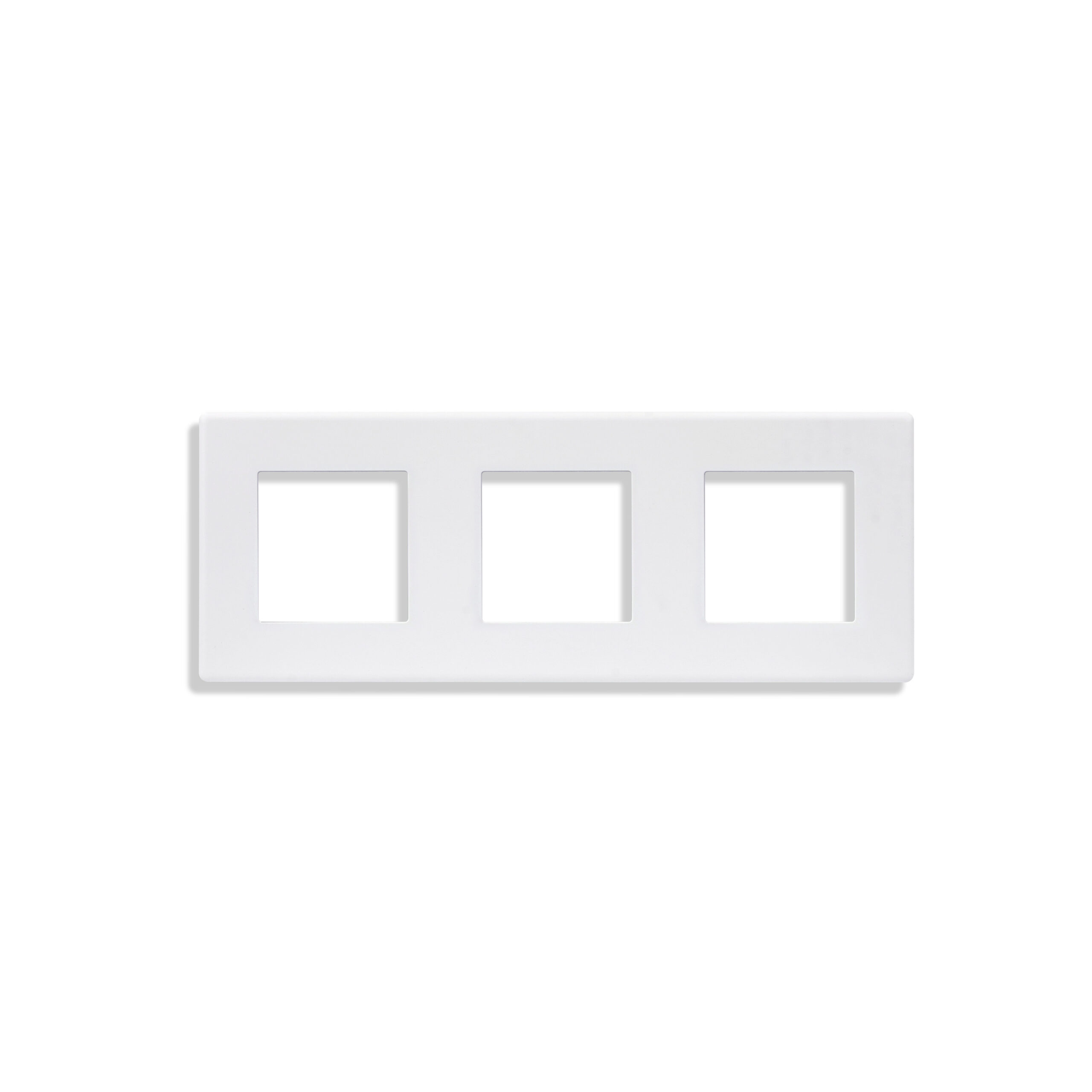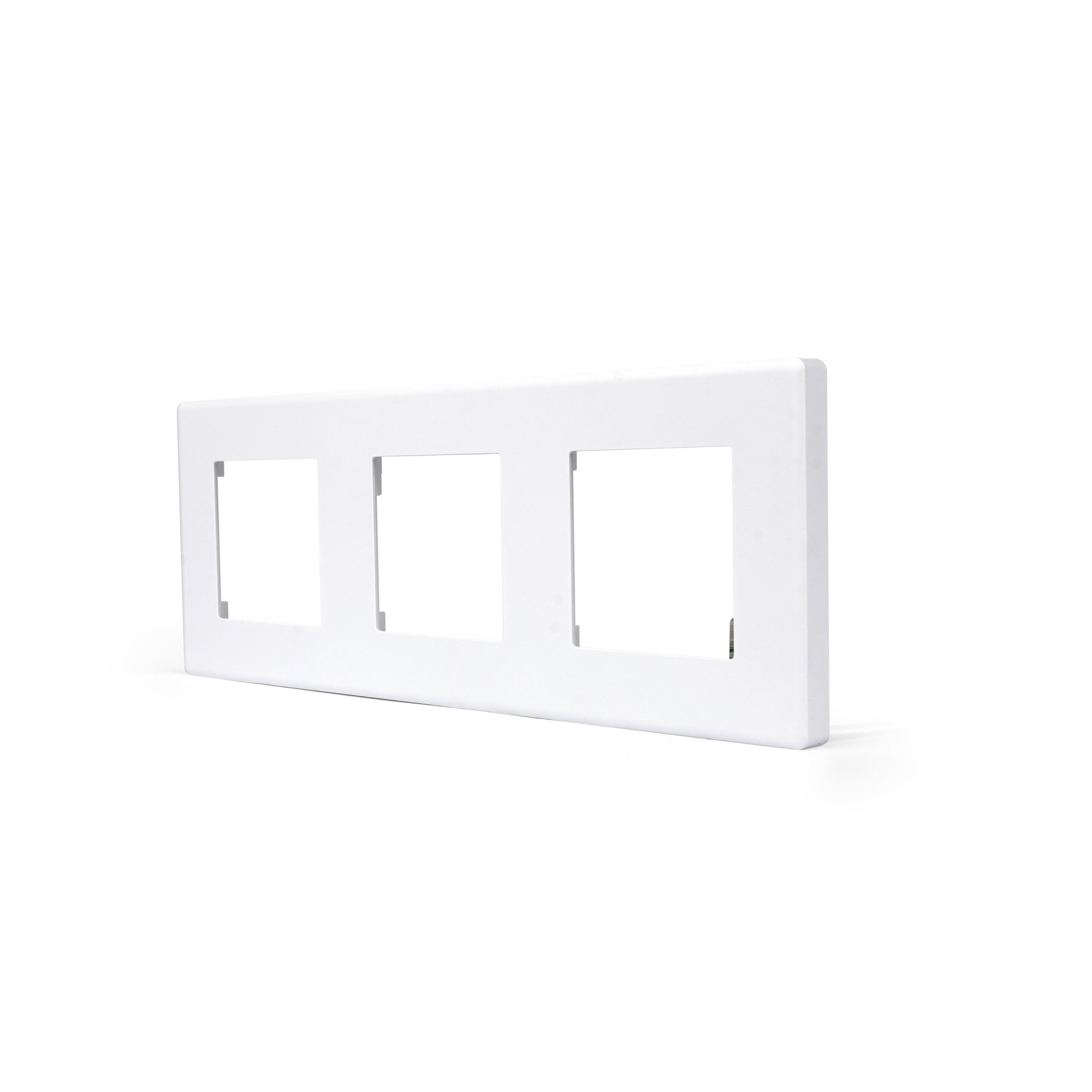 Marco embellecedor de policarbonato para tres mecanismos, disponible en dos colores: blanco o negro. Ideal para crear un acabado moderno y minimalista en cualquier instalación interior. Se puede combinar con cualquier mecanismo de la serie cristal. Apto para instalación sobre cajas de mecanismos empotrables universales. No compatible con los mecanismos de la serie PC. Está diseñado en policarbonato con las medidas 228 x 86 x 9 mm. Debido a su grado de protección IP20 es ideal para instalar en zonas interiores (protección contra partículas sólidas de tamaño superior a 12mm y no es resistente al agua). Dispone de una garantía de 3 años. Cuenta también con el certificado CE, que acredita que se cumple con los requisitos de la UE respecto a compatibilidad electromagnética y normativa de baja tensión. Con este certificado se declara la conformidad de dicho producto con todos los requisitos legales exigidos, y asegura la validez del producto para ser vendido en todo el Espacio Económico Europeo. Incluye bastidor.