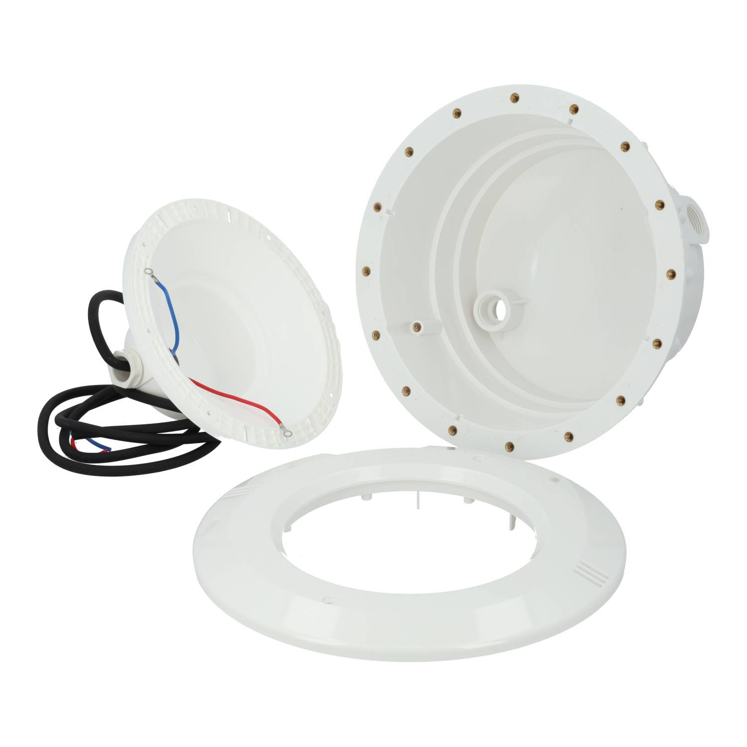 Este nicho está especialmente indicado para piscinas tipo liner. Es un accesorio necesario para instalar luces sumergibles de forma segura y profesional. Con un diseño robusto fabricado en ABS + PS, este nicho ofrece un grado de protección IP68, lo que garantiza su resistencia al agua y su capacidad para permanecer sumergido permanentemente. Especial para piscinas que utilizan luces de tipo PAR56. Cumple con las normativas CE y RoHS. ✅ Resistente y duraderos Dimensiones: Ø 290 x 153 mm, diseño compacto pero robusto. Material: Fabricado en ABS + PS, duradero y adecuado para uso subacuático. Grado de protección IP68: Totalmente resistente al agua, lo que permite una instalación sumergida permanente. ✅ Especial para luces PAR56 Medidas de corte: Ø 278 mm, perfectas para luces de piscina tipo PAR56. Instalación empotrada: Diseñado específicamente para luces PAR56, garantizando un ajuste preciso y seguro. No incluye lámpara: Compatible con cualquier luz PAR56 (se vende por separado). ✅ Fácil Instalación Color: Blanco, ideal para integrarse con la mayoría de los acabados de piscinas. Fácil instalación: Diseñado para facilitar la colocación de luces PAR56 en piscinas. Especialmente indicado para piscinas liner. ¿Qué son los nichos para luces empotrables? Los nichos para luces empotrables son estructuras diseñadas específicamente para alojar y proteger las luces sumergibles que se instalan en piscinas, fuentes o estanques. Estos nichos actúan como un “recipiente” o “soporte” que permite integrar las luces de forma segura dentro de la estructura de la piscina, asegurando que queden perfectamente niveladas con la pared o fondo y que estén protegidas contra daños físicos o filtraciones de agua. En el caso de las luces PAR56, los nichos están diseñados para adaptarse a las dimensiones estándar de estas luces (Ø 178 x 108 mm), proporcionando un ajuste preciso y una instalación limpia y estética. Funciones principales de los nichos para luces empotrables Protección de la luz: Los nichos protegen las luces subacuáticas de posibles daños durante la instalación o uso diario. Proporcionan un sellado adicional que complementa el grado de protección IP68 de las luces. Facilitar la instalación: Los nichos tienen medidas de corte estándar (por ejemplo, Ø 278 mm para luces PAR56) que permiten realizar cortes precisos en la pared de la piscina. Facilitan el montaje y reemplazo de las luces sin necesidad de modificar la estructura de la piscina. Mejora estética: Al ser empotrables, los nichos permiten que las luces queden integradas perfectamente con la pared de la piscina, ofreciendo un acabado limpio y profesional. En muchos casos, los nichos vienen en colores neutros (como blanco) que se integran visualmente con los materiales de la piscina. Evitar filtraciones: Los nichos están fabricados con materiales resistentes al agua (como ABS + PS) y cuentan con grados de protección elevados (IP68). Esto garantiza que no haya filtraciones de agua hacia la parte trasera de la luz, lo que podría dañarla o comprometer la seguridad eléctrica. ¿Qué tipos de piscinas son compatibles con estos nichos? Los nichos para luces empotrables son compatibles principalmente con: ✔️ Piscinas de hormigón: Las piscinas de hormigón son ideales para este tipo de instalación, ya que permiten realizar cortes precisos en las paredes. ✔️ Piscinas revestidas con gresite: El gresite es un material común en piscinas decorativas, y los nichos pueden integrarse perfectamente con este tipo de acabado. ✔️ Especial para piscinas liner. ¿Qué es una piscina de liner? Una piscina de liner, también conocida como piscina con membrana o revestimiento, es un tipo de piscina en la que el interior está recubierto con una lámina flexible impermeable llamada liner. Este material actúa como barrera para contener el agua y proteger la estructura de la piscina. El liner se adapta a la forma de la piscina y se coloca sobre una estructura previamente construida, que puede ser de hormigón, paneles metálicos, madera o incluso acero. El liner es generalmente de PVC reforzado, un material resistente, flexible y duradero que asegura la impermeabilización del interior de la piscina. Es una opción popular debido a su bajo costo, facilidad de instalación y versatilidad en diseño. ¿Cómo se instala un nicho para luces de piscina liner PAR56? El nicho para luces de piscina liner PAR56 está diseñado específicamente para piscinas con liner, lo que significa que su instalación debe realizarse cuidadosamente para proteger el liner y asegurar un ajuste perfecto. Aquí tienes un paso a paso detallado: 1. Preparación previa Reúne las herramientas necesarias, como tijeras o un cuchillo especial para cortar el liner, taladro, llave ajustable y sellador impermeable. Elige un lugar adecuado en la pared de la piscina donde no interfiera con el uso diario y asegúrate de que el área esté limpia y libre de objetos afilados. 2. Realización del corte en el liner Usa una plantilla o las medidas estándar del nicho (Ø 278 mm) para marcar el corte en el liner. Con una tijera o cuchillo especial, realiza un corte limpio y preciso siguiendo la marca. Asegúrate de no hacer el corte demasiado grande para que el nicho encaje perfectamente. 3. Instalación del nicho Inserta el nicho en el corte realizado en el liner y ajusta su posición para que quede bien alineado con la pared de la piscina. Si la piscina tiene una estructura rígida, fija el nicho con tornillos o anclajes. Aplica un sellador impermeable alrededor del nicho para evitar filtraciones de agua. 4. Instalación de la luz PAR56 Coloca la luz PAR56 dentro del nicho y asegúrate de que encaje correctamente. Conecta el cable de la luz a la fuente de alimentación, verificando que la conexión sea segura y cumpla con las normativas eléctricas locales. 5. Prueba final Llena la piscina gradualmente mientras observas si hay filtraciones alre