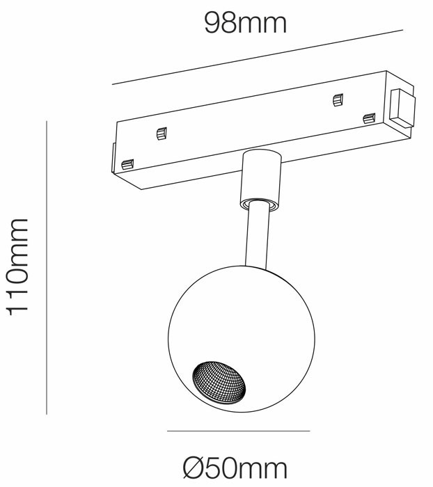 Lámpara BORA 4.5 W de Beneito Faure. Para uso con carril magnético de 48V. Alto rendimiento cromático, para lugares donde son necesarios colores precisos. Ideal para iluminación ornamental de comercios, galerías y restaurantes. UGR<10 para gran confort visual.