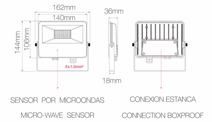 Proyector LED SKY MICROWAVE SENSOR de Beneito Faure