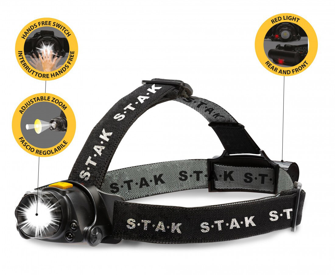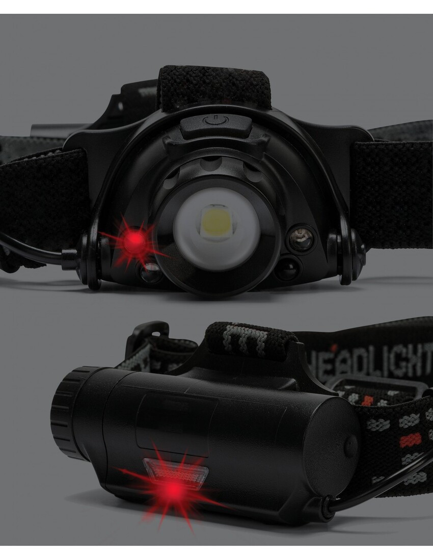 5 modos de luz blanca: 100% de brillo, 40% de brillo, 15% de brillo, 2% de brillo, estroboscópico y 2 modos de luz roja: fija e intermitente. Los comandos pueden ser a través del cómodo interruptor de goma o mediante el sensor de manos libres. Conveniente
