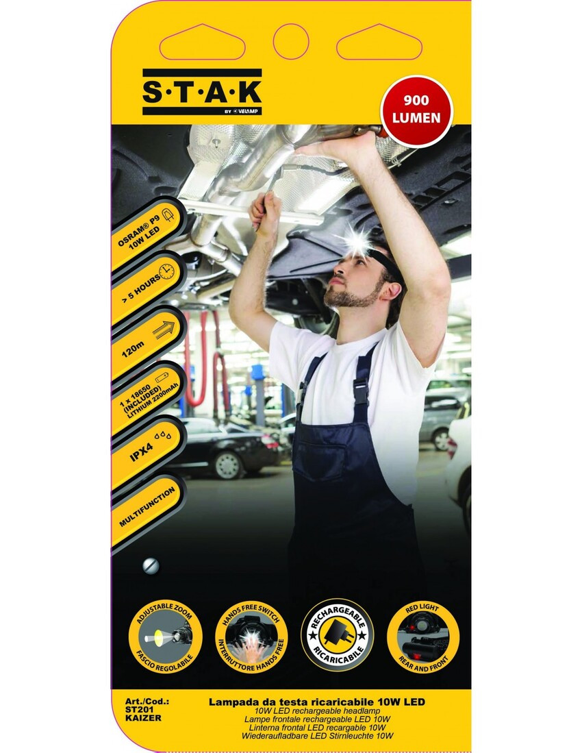 ST201 LINTERNA FRONTAL LED RECARGABLE 10W 900Lm VELAMP
