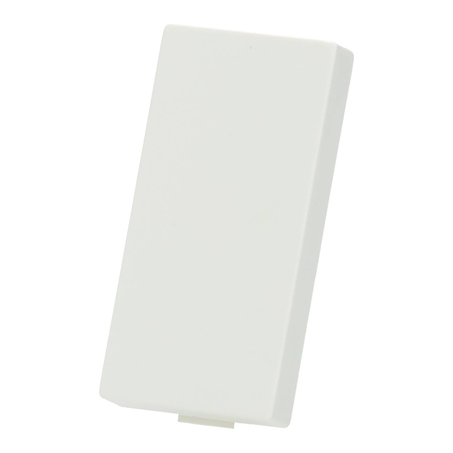 Tapa ciega para cubrir el espacio de medio elemento en cajas de mecanismos empotrables. Disponible en dos colores: blanco o negro. Se puede combinar dentro de una misma caja con otros mecanismos modulares de la serie cristal. Compatible con cajas de mecanismos universales y los marcos de la serie cristal. Está diseñado en policarbonato con las medidas 48 x 24 mm. Debido a su grado de protección IP20 es ideal para instalar en zonas interiores (protección contra partículas sólidas de tamaño superior a 12mm y no es resistente al agua). Dispone de una garantía de 3 años. Cuenta también con el certificado CE, que acredita que se cumple con los requisitos de la UE respecto a compatibilidad electromagnética y normativa de baja tensión. Con este certificado se declara la conformidad de dicho producto con todos los requisitos legales exigidos, y asegura la validez del producto para ser vendido en todo el Espacio Económico Europeo.
