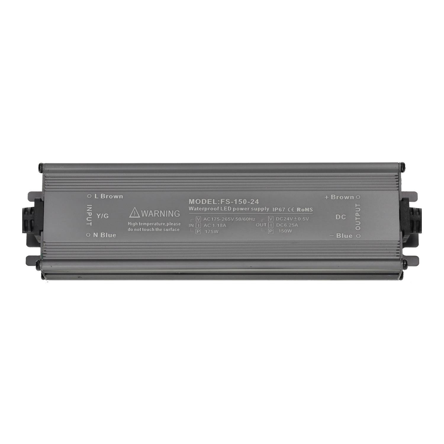 Transformador led especialmente indicado para tiras led de potencia no superior a 150W. No obstante, se pueden utilizar para otros aparatos de iluminación led que funcionen a 24V de corriente continua. Permite un voltaje de entrada de 110-260V y una frecuencia de servicio de 50/60 Hz. Intensidad de salida de 6.25A. Posee un grado de protección IP67 lo que lo convierte en un aparato ideal para su instalación en zonas exteriores. Dispone de una garantía de 3 años. Cuenta también con el certificado CE, que acredita que se cumple con los requisitos de la UE respecto a compatibilidad electromagnética y normativa de baja tensión. Con este certificado se declara la conformidad de dicho producto con todos los requisitos legales exigidos, y asegura la validez del producto para ser vendido en todo el Espacio Económico Europeo.