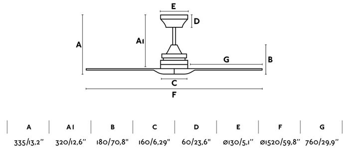 Ventilador ALO de Faro. Cuerpo de acero negro y palas de madera, con un diseño sencillo de líneas claras. Para habitaciones grandes. 3 velocidades y función inversa para verano.