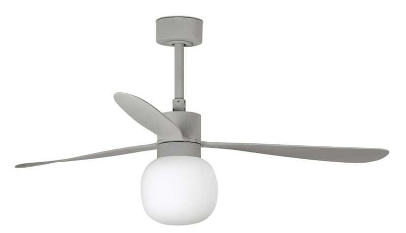Ventilador AMELIA BALL LED de Faro Barcelona. Luz suave para iluminación general. Para estancias de hasta 28 m2. Modo reversible para calentar la casa en invierno. Motor DC para funcionamiento silencioso y de bajo consumo.