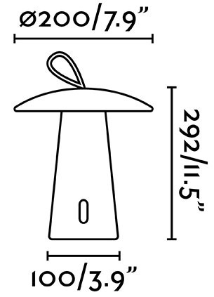 Lámpara portátil LED TASK de Faro Barcelona. Diseño desenfadado, con un asa de cuero para facilitar el transporte. Hasta 80 horas de autonomía.