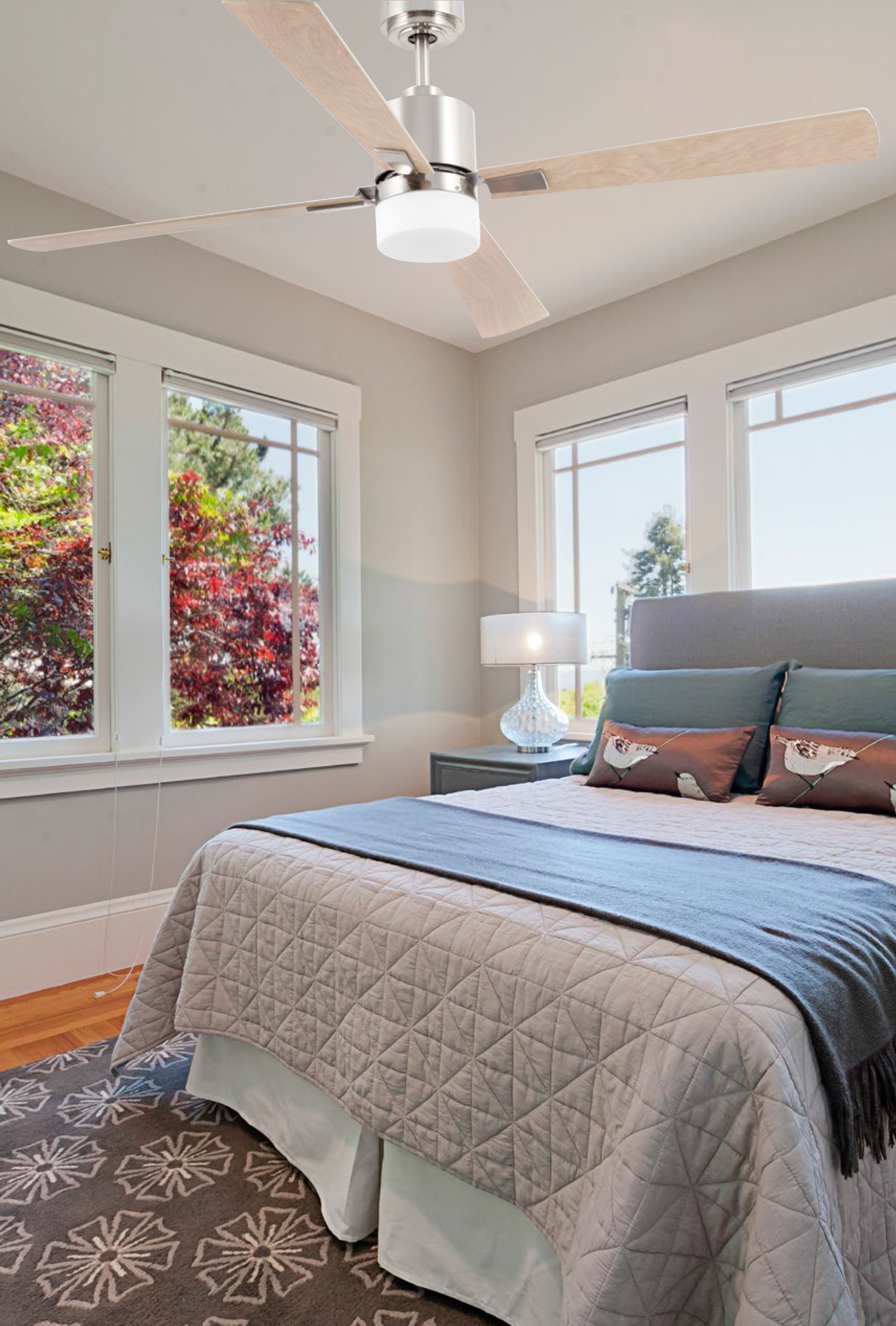 Con un diseño que conjuga la madera con el níquel, el ventilador con luz Palk de Faro sirve tanto para espacios con una decoración moderna como para otros más tradicionales. Permite añadir dos potentes bombillas LED de hasta 40W, lo que lo convierte en una eficaz fuente de iluminación para lugares como dormitorios.